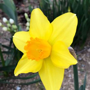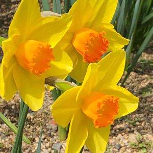 ラッパ水仙 ピンザ 今年も咲きました😊 いつもはラッパの部分が鮮やかなオレンジ色なのに、今年は色が薄い。 これから濃くなるのかな🤔?