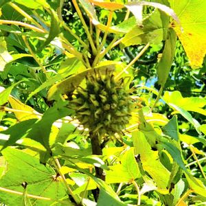 おはようございます🌤🙋♀️ 天高く…心地よい秋空 🌳モミジバフウ のトゲトゲな実が また秋を感じさせてくれます._.♡