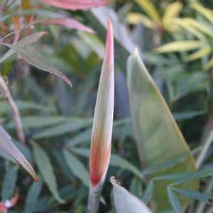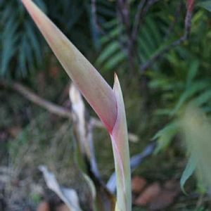 今日の極楽鳥花の蕾 大分角度がつきました 寒い日もあるので、耐えているのでしょうね。 他の花穂は天を向いています。