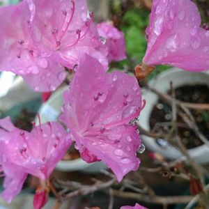 我が家に来て3年目。 八重咲きの玄海ツツジ『薄雲』が今年も咲きました(^^) パッと華やかなピンク色で窓から見えるのが楽しいです🌸 去年よりだいぶ身長が伸びました。 ピンク色のツツジの花言葉は「愛の喜び」 英語では「アザレア」というそうです。あれ🙄?