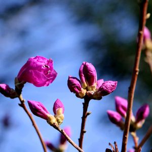 《 春の早咲きツツジ 》 ゲンカイツツジ(玄海躑躅)の蕾が青空に包まれて開き始めました 朝鮮半島から九州にかけて玄界灘に接するエリアに自生するツツジです 開花すると、花弁は皺を持つたウェーブを魅せて、木全体を明るく染めます 埼玉県花と緑の振興センターの入口は、まもなくこの満開のツツジが出迎えてくれるでしょう☀️☺️