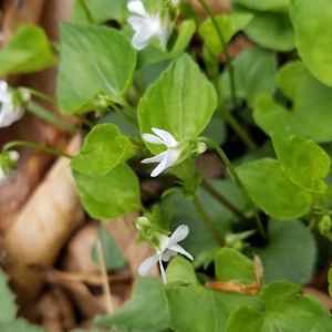 何かの苗についてきたスミレ。 アリアケスミレかな? 白いスミレもかわいいです💕