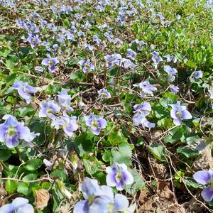 桜を、見に行って脇道に入ると タチツボスミレかと思われるスミレの群落が❣️一面に咲いてなんだか ほんわかと優しい気持ちになれました🎶😃