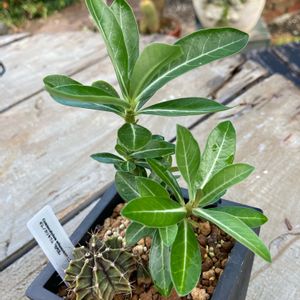昨日載せられなかった雨ざらしで日晒しにしたアデニウム 葉っぱがぐんと大きくなった😃