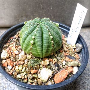 いつもの花屋さんが今日明日は 苗もの20%OFFなので 定期受診の後ソッコー入店 パキポは理想のかたちの子がいなくて 断念😭 でもユーフォルビアコーナーで この子を発見しお迎えしました 丸っこくて可愛い♡