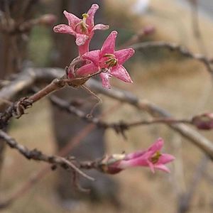 勤め先の植栽の木 週始めに咲いていました。 ウグイスカグラの花です。 本来、春に新芽と共に開花する花。 まれに今の季節に見れるらしい。 少し鮮やかさが無い様に見えますが、咲いているのを見るとほんわかします。 残念ながら週半ばに氷点下の寒波となり、昨日見たときには花は萎んで枯れた状態でした。