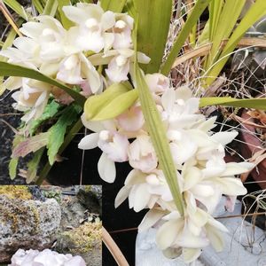 シンビジウム と 外に置いといて 色が真っ白になってしまった 紫の アメジスト❓ 色を形成している 結晶が 紫外線によって 分解されると 変色してしまうのね! あら!😲 難しいこと知ってるわね! オラ 調べたもんね🤭 最初春蘭と 名前を付けましたが 後でシンビジウムと分かったので 訂正させていただきました🙇