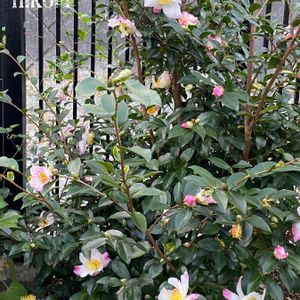 散歩の途中で見つけました。サザンカだとおもいます。 白とピンクが混じってとても可愛いです。💗