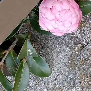 サザンカ ブロック塀とフェンスのすき間から 一輪だけ… すぐ😃見つけたよ‼️ 覗いて…待っていてくれたの? ありがとう<(_ _)> 会えたね!