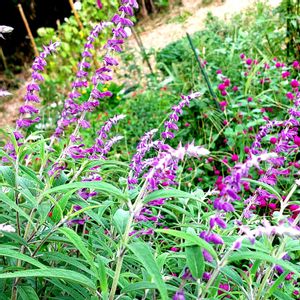 鉢植えのアメジストセージ💜 ワサワサに育ち、鉢植えが、根っこ飛び出し動かせなくなるほど、大きく育つとは・・ビックリです😅