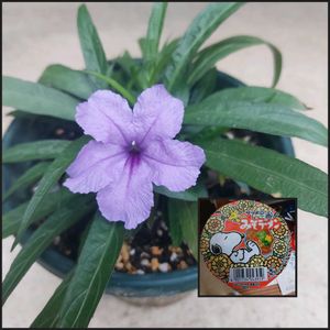 花友さんからのルエリア💜🌿 初めてのお花🔰冬越しも、無事に乗り越え、花が咲きました \( ^▽^ )/嬉♡ 久しぶりに、スヌーピー参加です。 ミニカップ麺、小腹空いた時の(*´ 艸`) 🏷毎月2日はスヌーピーの日