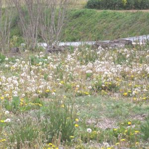 タンポポの群生、見た目は綺麗なんですけどね 耕作放棄地…種を撒き散らして大迷惑なんですよ…