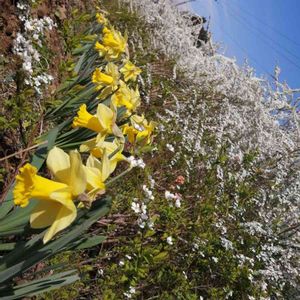 スイセンとユキヤナギのコラボ 🏷️日曜にこにこネコ目線、参加させていただきました