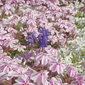 カラフルなシバザクラの中にニョキッ! なかなかのセンス… 意図的に植えたのかな? 田舎の庭はにぎやかですね(^.^)