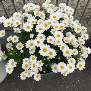 こんばんは😃🌃 PWマーガレット ホワイトモカ 初めて育てます。 多彩な花色長く咲き続けるコレクション。 分岐性が、よく枝数が、多いのでたくさん花が咲きます。豊富な花色を、楽しんでください。 二重咲きの可愛い花を咲かせる品種です。 キク科 アルギランセマム属 非耐寒性多年草 最低温度0℃まで 開花期:春~初夏、秋~初冬。 草丈:20~30cm 株幅:約30cm 花壇、プランター、鉢植え、ハンギング。 65cmプランターに2.3ポット。 花壇植えは、20~30cm間隔が、目安です。 水はけの良い土に、緩効性肥料を、与えてください。 日当たり良い場所に置いて、乾きに注意し頻度高めに、たっぷり与えてください。 緩効性の置き肥を1カ月に1回程度、液肥(1000から、2000倍)を 1~2週間に、1回程度与えてください。 上手に育てるポイント 終わった花をこまめに摘むと次の花が咲きやすくなります。 冬は、軒下など、寒風や強い霜が、直接あたるのを、避けた場所で、管理すると株が傷みにくいです。