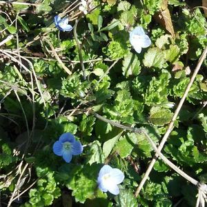 オオイヌノフグリ 一面ナズナの場所だった。 耕運機で、耕されてたよ。端の野草が生き残ってた。 小さな星の瞳。 ナズナも少しだけ。 春を告げる野草だね。 ネモフィラのお母さんかな。