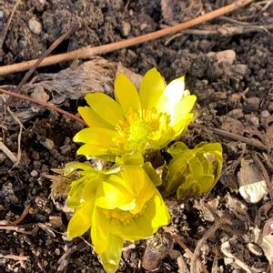 庭に色がついてきました。 福寿草、クロッカス、クリスマスローズ、スイセン、スノードロップが咲き、あちこちからチューリップの葉っぱが出てます。 今見たら咲いてる花が増えてた🤣