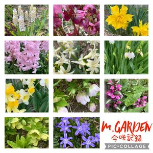母庭 スイセンとクリスマスローズ、ムスカリ、ヒヤシンス、芝桜……
