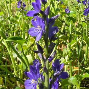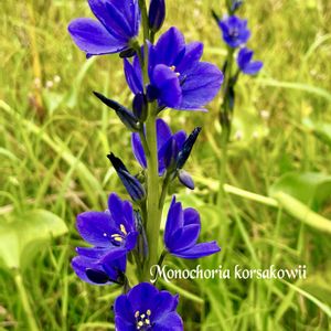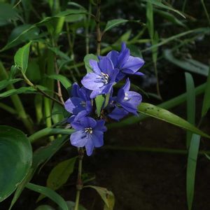 ミズアオイ ミズアオイ科ミズアオイ属 一年草 淡水に生える抽水植物 別名はナギ、ミズナギ 北海道、本州、四国、九州に分布 湖沼、水田、水路などに生育する。 準絶滅危惧(NT) 花期8〜10月 茎は横に這う根茎となって斜上し、葉が束生する。 葉は心形でアオイの葉に似ている。水草なのでミズアオイと名付けられている。 花茎は高さ30〜70cmになり、葉より高く伸び10〜20個以上の花を付ける。 花は一日花で、花序内に数個ずつ付く。 花被片は6個あり、楕円形で長さ15〜20mm。内花被片はやや幅が広く、色は青紫色。 雄しべは6個で、うち5個の葯は黄色で小型、残りの1個の葯は紫色で大型である。