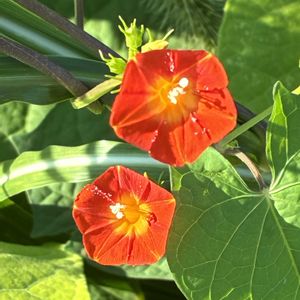 今朝、窓の外に赤い光が、、、使徒が来たぁあ〜❗️❓😱日の出のひと時、虹🌈が朝焼けで赤く見えただけのようで数分で消えました😅エヴァンゲリオンの使徒が来たかと思ったよ😅💦お山のパトロールで最近よく咲いてるので調べたら、ヒキオコシとでました😀ハスの鉢のミズアオイ😀あまり長く咲きませんね💦畑のゴーヤのあとに生えてきたゴーヤ、もういいけど😅サツマイモ🍠の今日の収穫分です😀
