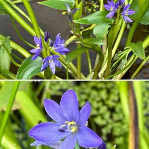 🏷️水曜日は水色 🏷️水辺の水曜日 🏷️素敵な水曜日 🔵ミズアオイ(水葵)🔵 小さな池の畔 青紫色の清楚な花姿✨💙 緑色の葉もお日さま浴びてきれいです💚✨ 「水田雑草とも呼ばれ、今は絶滅危惧種❗」 綺麗なんですがね😅 花言葉💐 『前途洋々』『雲隠れ』『沈黙』