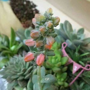 そっくりさん、同時に花芽をつける❣️ 右、澄江。左、銀明色。澄江は銀明色の交配種とのこと後で知りました😅 お花もおんなじかな?銀明色は、一寸鉢でお迎えしたばかりのちびっこなのにまさかの花芽です😆