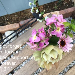 キュンキュン乙女倶楽部 🏷2021.3.11 「ひとりじゃない、繋がろう」賛同いたします 娘が車🚗を購入した時に頂いたお花💐