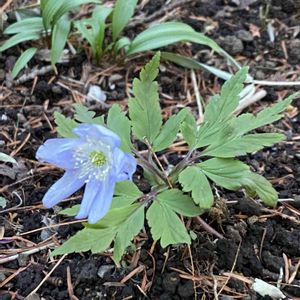 キクザキイチゲ キンポウゲ科 別名 キクザキイチリンソウ 淡い青色がとっても素敵です💛 花びらに見えるところが萼って、不思議です!