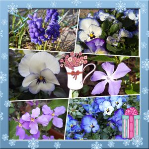(祝)チーム・ブルー1周年🏷…💐🎉… ㊙️**花ママ**さん.… 3200pic🎉💐🎁… おめでとうござい…ま〜す… 🎂…🥂…㊙️🤗✨… 青い花集めしてみました… ムスカリ… ビオラ… ムラサキハナナ… ツルニチニチソウ… の花で…💠🎶💙💟🙆🏻♀️🤗✨…