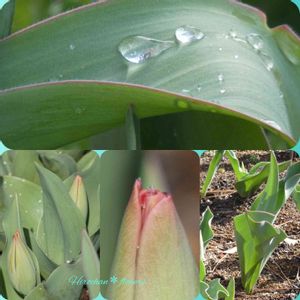「チューリップの葉と蕾」 蕾が膨らんで来ました😉 昨夜からの雨☔️も上がり、暖かな晴れ☀️ これからが、楽しみです(’-’*)♪