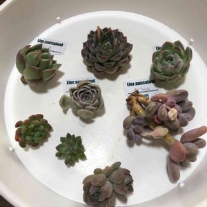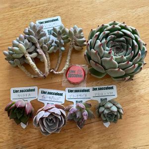 こんばんは☺ ポカポカ春の陽気に多肉ちゃんたちも気持ち良さそうです😊 先日届いた🎊リエール3周年記念セット🎊 可愛い( ´,,•ω•,,`)♡ 手前の子オマケちゃんなんですが 手のひらサイズでビックリ👀✨ 名前は分からないので【キャベツちゃん】って呼んでます😅w プレステラ90では小さいので別の鉢にお引越ししてもらいました😄💦 みんな元気に育ってね🌹✨