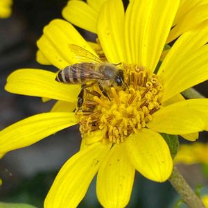花🌼に気づいたのは私だけでなかった🐝 映す瞬間わたしにも気づかず映り込んだ🐝さん
