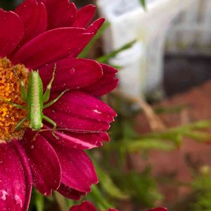 お花も虫達も♪(๑ᴖ◡ᴖ๑)♪ ボンザマーガレットチェリーと イナゴの赤ちゃん♡♡♡