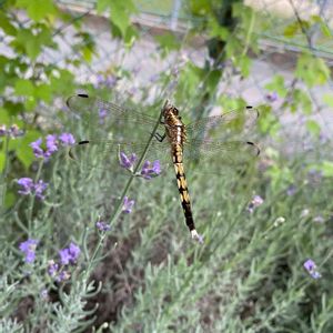 おはようございます😃 ただいま27℃蒸し暑いです😥 畑のラベンダーの森のゲストは シオカラトンボ🌿=ї=🌱 羽がキラキラ✨