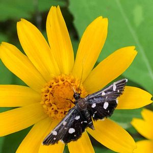 チョウならセセリチョウの仲間 ガならシタバの仲間のような気がします この黄色い花はいろんな虫が来ます