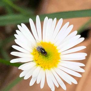 花と虫 毎日こう暑いと花も虫も出て来ません 小さな花に小さな虫が乗っていた ヒメジョオンですか? 虫はよく見るとハエでした