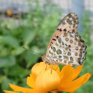 ツマグロヒョウモン♂ いつもならオスもメスももう少し飛ぶんですが、今年は少ないですね いつもこのオレンジ色の花に来ています