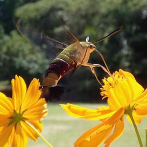 スズメガの仲間で スカシバ 小さいのもいた これは大きいのでオオスカシバ? 羽根を高速で羽ばたかせて ホバリングしながら次々と花の蜜を吸って行く その能力うらやましい