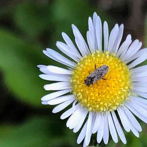 ヒメジョオンと虫 猛暑続きで花といえばヒメジョオンしか咲いていません まあ雑草には夏は厳しいですね