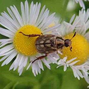 花と虫 花:ハルジオン 虫:ハムシの仲間? いろいろ調べた結果 ヒメジョオンですね