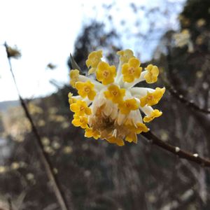 ミツマタ。 1年ぶりに行った山の中の日帰り温泉、帰りに少しまわり道して帰りました。山にミツマタが咲いていました。この道通るの初めてでした。