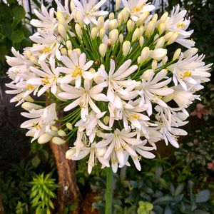 3回目の開花を迎える アガパンサスホワイトヘブン 記憶に自信がありませんが・・ 2020年にタキイで購入し定植 2022に初めて開花しました カタログには開花までに 半年から1年半を要すると記載があり 待ちに待った開花でした 昨年は施肥をしなかったせいか あまり密には咲いてくれず がっかりしたのですが 今年はきちんと施肥をしたところ 密に咲いてくれそうです 開花まであまり雨にあたらず 大輪を咲かせて欲しいです この頃は毎朝窓から見るのが 日課になっています(^^)