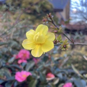 YS散歩🍀 水曜木曜金曜と3日間 800坪ほどのお宅の草取り🌿🍂 (5人体制) お庭に咲いてました🌸☘️🎶 ①オウバイケイソウ モクセイ科 ソケイ属 【黄梅にいぶせし外科の住居かな】淡々 ②ミツマタ(三椏) ジンチョウゲ科 ミツマタ属 【みつまたの上や血になくほととぎす】正岡子規 ③ガーベラ🌸 ④ロウバイ(蝋梅)🌼