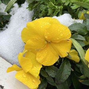 YS散歩🍀 お昼までの庁舎,花壇に٩ 「パンジー」💛🎶 雨にも負けず☔ 雪にも負けず☃️8㎝ほど 🌼(*^◯^*)