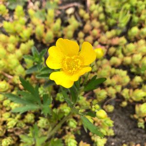おはようございます☺️🎶 今日、水撒きしていたら、毎年咲いてくれる黄色い子💛が咲いていました(いつも名前が出てこない😅) ぎゅうぎゅうの西日ガンガンなのに♪ヽ(´▽`)/ セダムも黄色い💛お花が咲き初めています🤗 右下の方に、殆んど見えませんが😅去年、見切り品でお迎えしたイワダレソウ💗も咲いてきました🤩