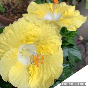 こんばんは🌃 朝は蕾だったけど、仕事から帰ったら うちに来て初めて咲いていました🌼 しかも2輪😍 昼間見ることができずに残念です😢 これからも咲いてくれると期待します(๑♡ᴗ♡๑) レモンイエローのハイビスカス やっと咲いてくれました٩( ᐛ )و 台風の影響を受けている地域の方々に 最小限ですみますように 願うばかりです🙏