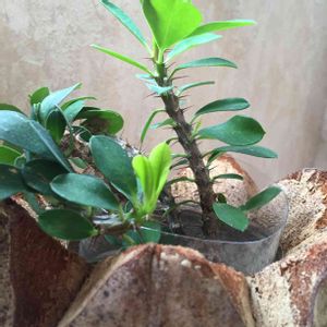 水差しして発根中のハナキリン。 新しい葉っぱは明るい緑色。 げんきそう✨