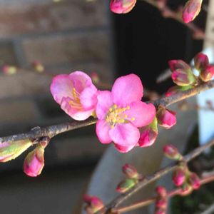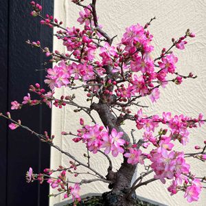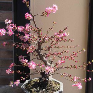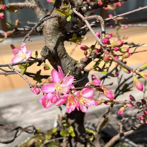 春の訪れ🌿 林州梅盆栽 開花宣言してから4日目、三分咲きになりました🎶 ピンク色の可愛い花が咲いています🌸🌸💞
