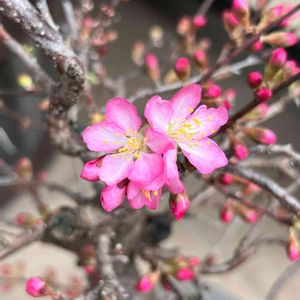 春の訪れ☘️ 林州梅が咲きました。5輪咲いたので開花宣言です🌸 ピンクの花が可愛い花です🌸🌸