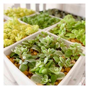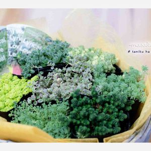 祝1000万枚突破!!記念フォトコンテスト受賞のセダムセット届きました。 (この写真の4セット分) ありがとうございます。 年末年始に寄せ植えできるかな。 (*´▽`)v うちのセダムちゃんたちは、寒さでぼろぼろです。 この子たちは大丈夫かしら? 青々としてるけど、温室育ち? 心配で、いきなり外に置けない… しばらく夜は室内に置いておこうかなと思います。